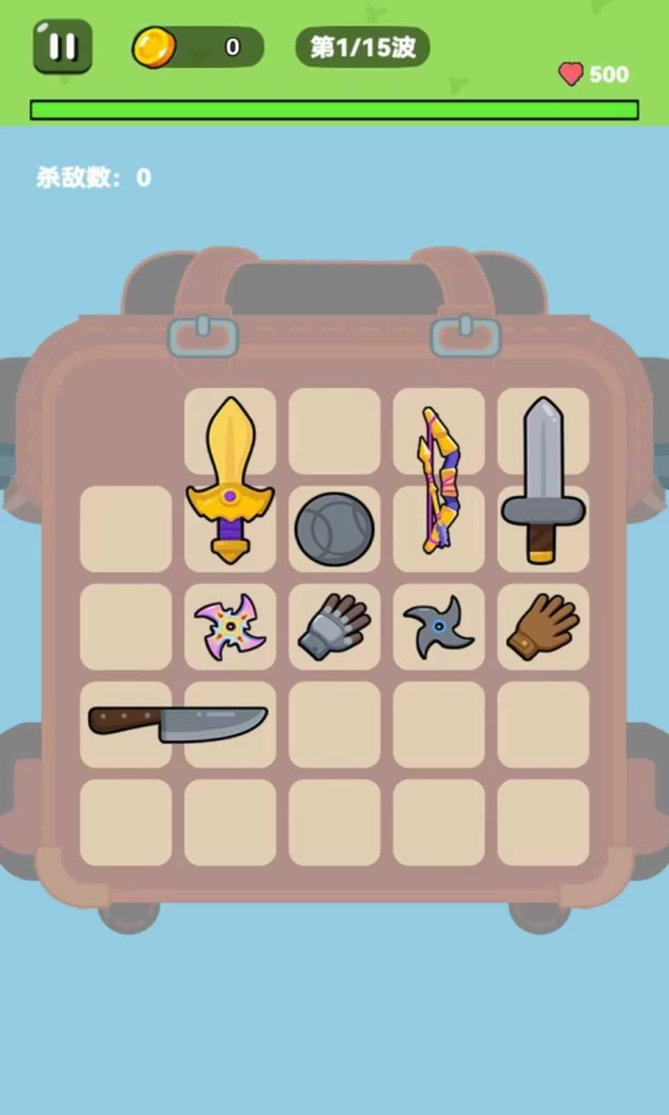 1、进入游戏后,打开背包界面,将初始武器拖动到合适的位置,以此来阻挡敌人