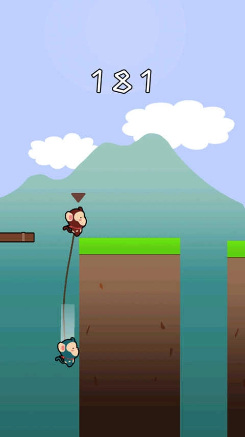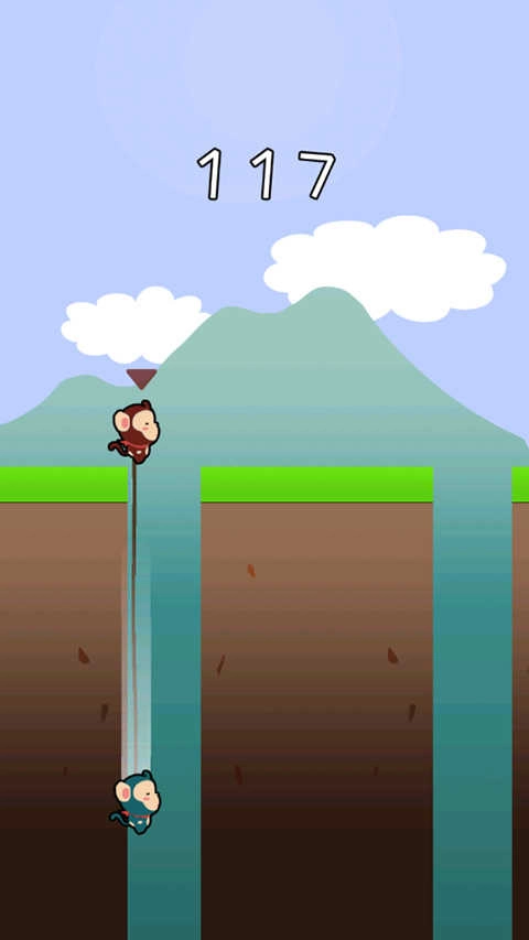 哥俩好游戏以竖屏平台跳跃为核心玩法,打造出一个既轻松又让人着迷的双猴协作世界。两只猴子主角被一根极具弹性的绳子紧紧拴在一起,你操控哪只,哪只就会跃起移动;另一只则会随之摆荡,或是悬在空中积蓄力量。游戏中的地形变化多端,时而出现摇晃的木板,时而遇到会下沉的浮台,甚至还有突然就消失的踏脚点。这里没有固定的终点,只有一条需要越跳越远的山野漫长道路,通关的关键在于你和“猴兄弟”之间的节奏同步以及信任配合。