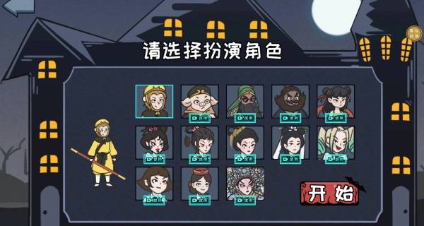 2、选择好场景后就选择你自己喜欢的角色,你第一个将会得到的角色就是孙悟空,其他的角色是需要观看影片才能解锁;