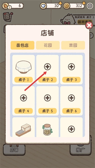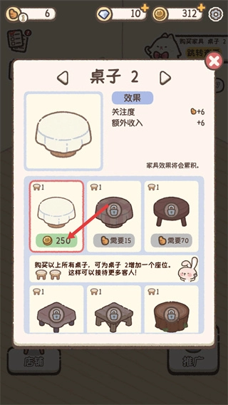 3、选择了之后可以购买新的桌子来进行布置;