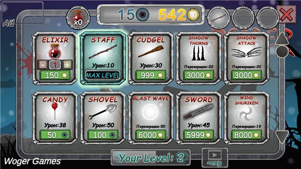 6、完成关卡挑战或挑战失败后都会进入结算环节,你可以使用结算时获得的金币,在游戏主页的商店里选购各类武器和道具。