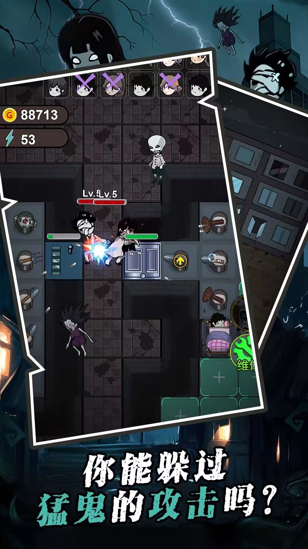 1、躺平作战的过程中挑战重重,猛鬼的数量十分庞大,你得设法将它们全部消灭。