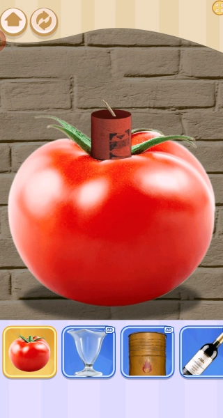 之后又选择了爆压,点燃番茄上方的引线,它就会跟着爆炸。