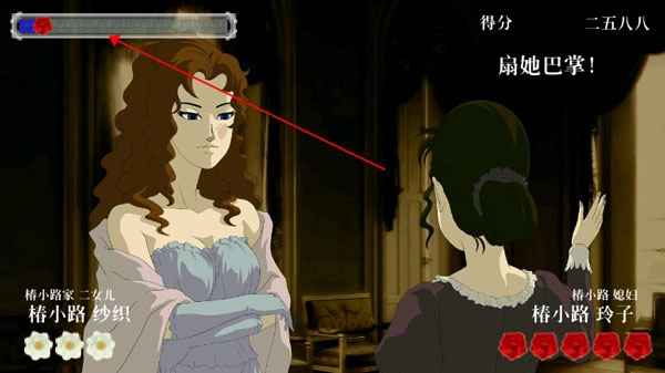 当左上方的仪表切换至蔷薇状态时,朝着对方的脸部滑动屏幕即可完成扇巴掌的动作。
