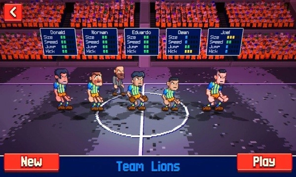 超级跳跃足球是一款非常有趣的像素复古足球比赛游戏。游戏采用了2.5d复古美术风格,并采用了夸张的物理效果。