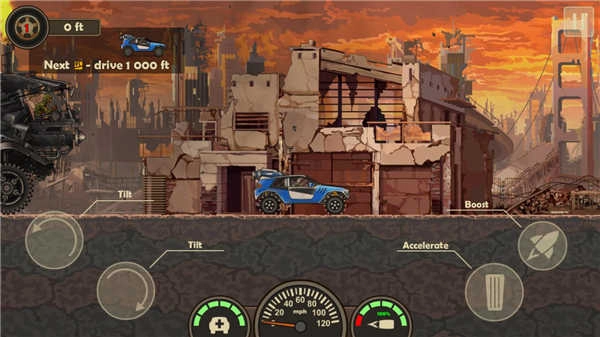 1、以末日废土为背景设定,每一次闯关都能看到形形色色的城市废墟与荒野景象,带来全新的视觉体验,助力玩家完成各项挑战。