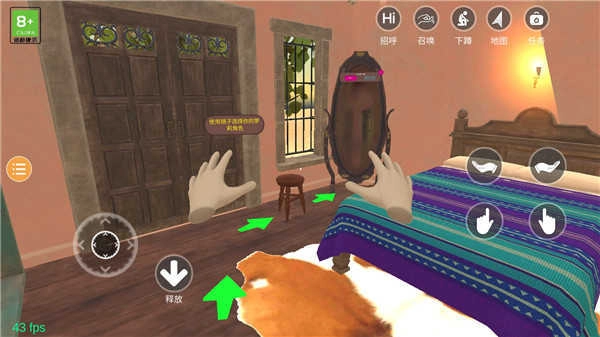 3、左右手指姿势可以操控手拿起物品,当物品出现左边这个图标提示时,则说明可以拿起或是操作;