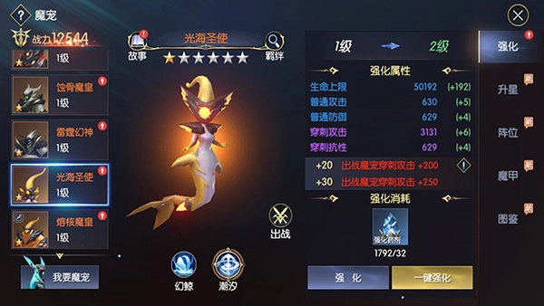 【圣羽光神】虽以强化混沌攻击为核心定位,但其基础数值较为出色,在等级相同的情况下,能为玩家带来更显著的属性加成,建议优先考虑培养。另外,【光海圣使】的被动技能“潮汐”具备降低敌人20%伤害的效果,这一特性可有效提升龙战的生存能力。