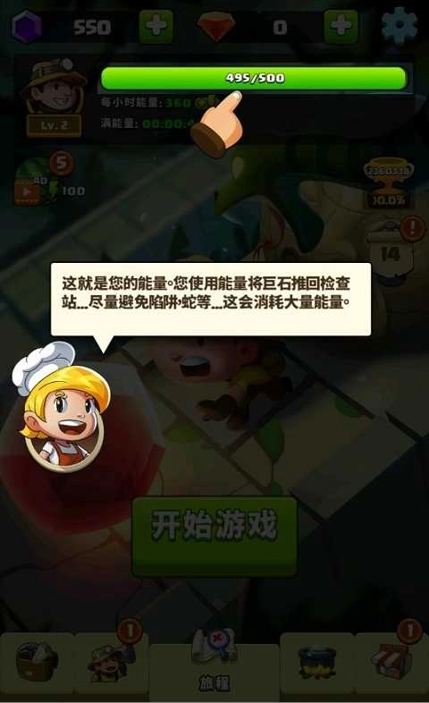 6、能量是你的生命线,无论是推动巨石还是开展其他行动都离不开它,要注意别把它浪费在蛇、陷阱这类不必要的风险上。