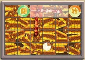 2、第一步,我们要把食材区的食物拖到烤架上。注意别让食物重叠,一旦重叠就烤不熟了。要是想调整食物在烤架上的摆放位置,可以用转向功能来操作。