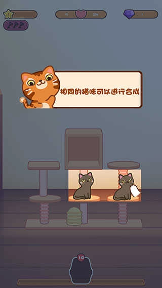 合成新猫咪:玩家可以通过合成不同的猫咪来创造出新的猫咪种类,这大大增加了游戏的趣味性和可玩性。