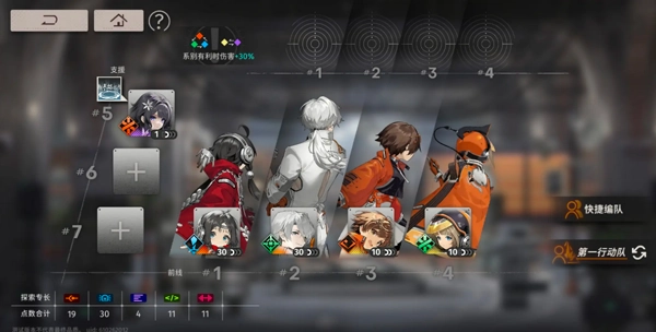 3、这游戏的治疗量有点“微妙”,不过朝颜作为暴击辅助的手感还不错,而且能和净天音希搭配使用。建议卡带要是没带4治疗的话,可以留出两个位置带初始能量,这样就能连续给两名队友上buff了。