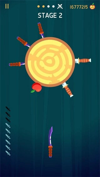 3、注意别随意投掷飞刀,否则转盘会被彻底损坏,关卡就得重新开始。