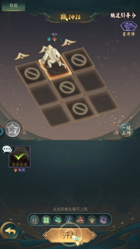 2、开战前布阵:点击异兽头像可上阵。