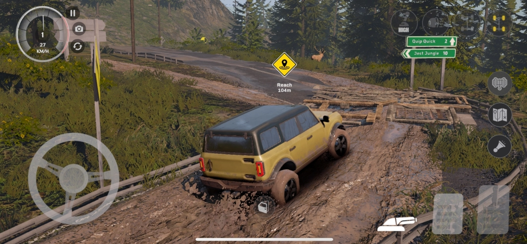 2. 围绕越野这一核心主题,游戏会在赛道中融入各类极限地形元素,以此增强驾驶过程的挑战性。