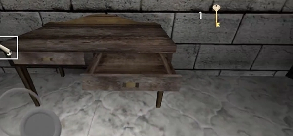 然后接着走一段长长的走廊,在走廊的尽头可以发现一张桌子,并在桌子的抽屉里找到另外一把钥匙,找到钥匙后就可进入游戏下一轮了