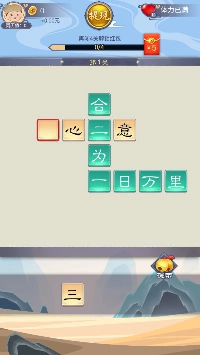 【海量关卡,过关领红包】海量关卡设置,过关就能领红包。老少皆宜,小朋友玩可以增添成语词汇量,大人玩可以过关领红包,在家玩游戏就能赚钱,一举两得!