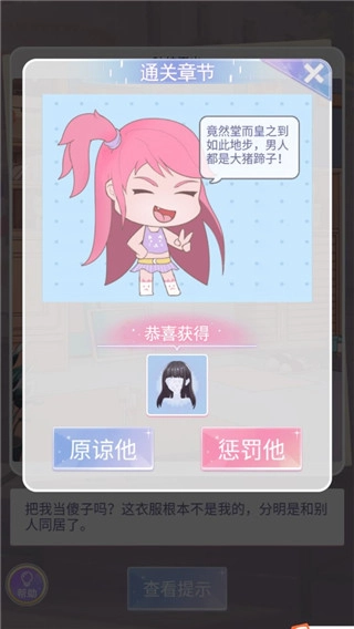 可以自定义渣男的惩罚方式,选择原谅他或是离开他,全由你自己决定。