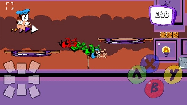 4、进入游戏后,左边可以控制角色移动方向,右边A键控制跳跃、X键将敌人举起、B键技能向前突进、Y键是触电;