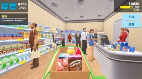 你得用手指拖动商品图标,把不同品类的货物准确放到对应的货架上,这样才能提高顾客满意度,还能触发连击奖励。