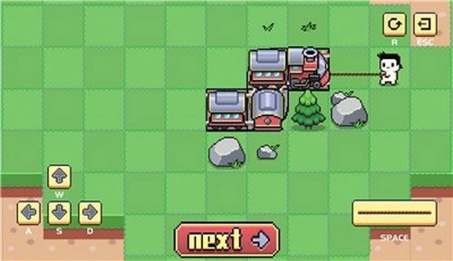 CiGAGameJam小时开发的作品。游戏的目标很简单就是想办法把火车都拉到轨道上去。四节车厢都在轨道上即可过关