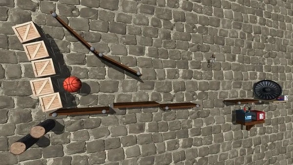 创意创新探索:尝试非常规的零件组合,挖掘隐藏玩法。比如用风扇产生的气流推动小球(替代轨道运输),用齿轮组带动多个弹簧同时弹射(实现多目标同步触发),这些创新解法不仅能获得更高评分,还能解锁"创意大师"成就。