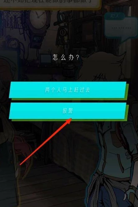 第二个选择是在章节快结束的时候,问怎么办的时候,选择报警,这样剧情第一章就基本通关。