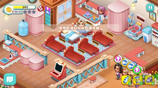 要在规定时间内治疗所有病人,在合适的时机使用道具,能更轻松地完成任务关卡。