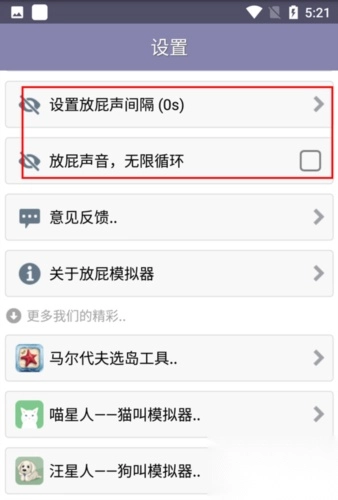 当你想要恶搞他人时,点击上方进入设置界面,调整放屁声音的间隔时间,这样就能实现恶搞的目的啦。