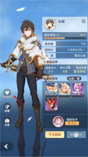 2、接着点击礼包码选项,在兑换输入框中填写对应的礼包码就能完成兑换(注意:礼包码功能需角色等级达到20级后才会解锁使用)