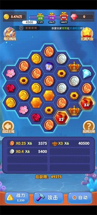 2、尽可能连续消除多个物品,如此一来不仅能获取更高分数,还能够激活主角的技能,提升攻击力。