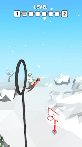2、游戏的关卡难度会逐步提升,玩家得借助各类道具在空中完成翻转动作,把篮球酷炫地扣入篮筐。