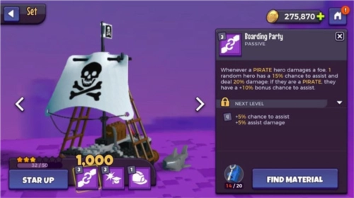这个套装能让海盗发起攻击时,有概率触发其他角色进行助攻,并且要是助攻角色本身也是海盗的话,触发的概率还会更高。