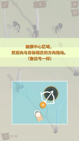 瞄准技巧:拖动手指的方向要和目标方向相反,拉弓的距离越长,箭的射程就越远,松开手指箭就会发射出去。