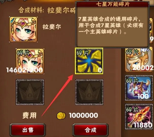 合成英雄时可以使用七星万能碎片加速合成