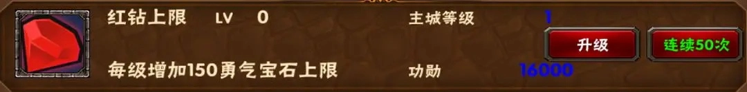 在红钻上限的上方,有一个标注为BOSS等级的科技选项。它的作用是提升活动试炼中BOSS的初始等级——BOSS等级越高,成功击杀后能得到的勇气宝石和幻想宝石就越多,但相应地,BOSS的难度也会直线上升。要是你没办法做到一波秒杀BOSS,其实不太建议升级这个科技,毕竟每天获取宝石的数量本身就有上限。