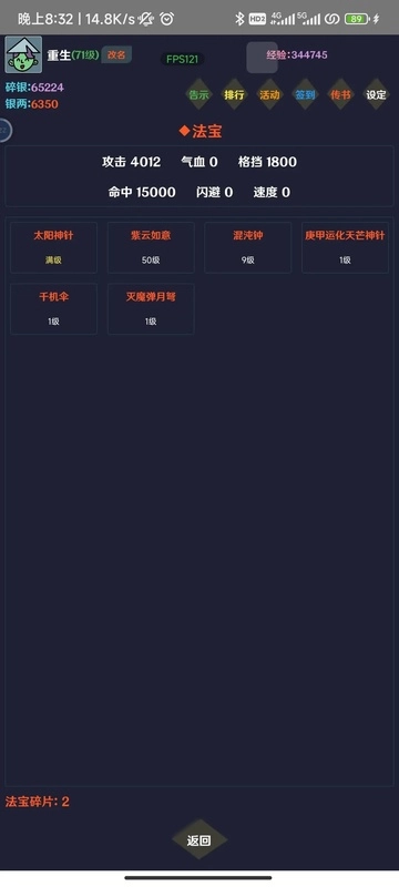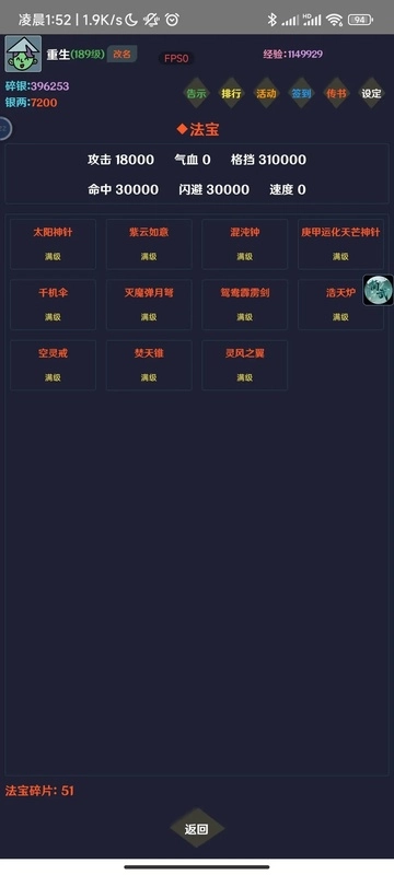 加了命中和格挡属性的法宝数值给得很足,要是前期能把它们的效果拉到一半,不管是挑战爬塔还是推进地图都会轻松不少。
