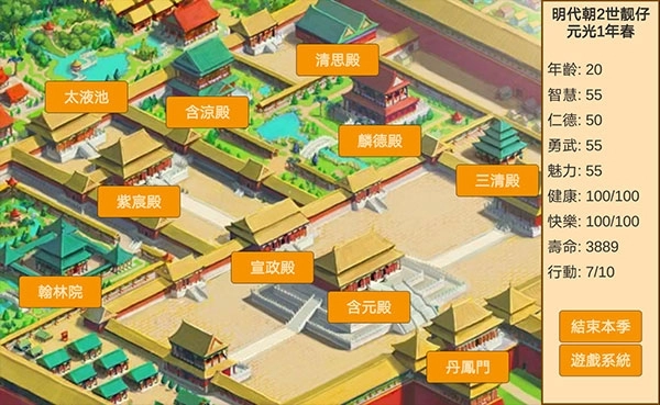 5、退朝之后,你可以点击皇宫任意地方进行操作,让这个朝代在你的手上变得更加繁荣昌盛。