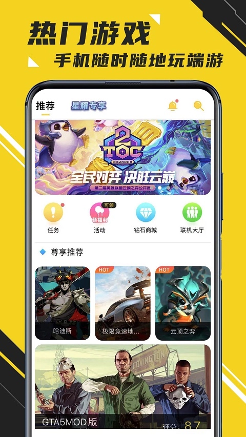 3、联机开黑功能,在任何时间、任何地点,即点即玩,免去了等待的烦恼,真正实现了轻松愉快地云游戏。