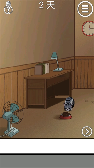 第二关的步骤是:先打开柜子取出猫粮,接着把猫粮倒进左边房间的碗中,以此吸引猫咪现身。