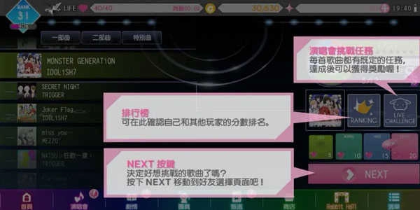 跟随指尖的律动,轻触歌曲界面,操控偶像达成任务,轻松流畅地掌握正统游戏节奏。