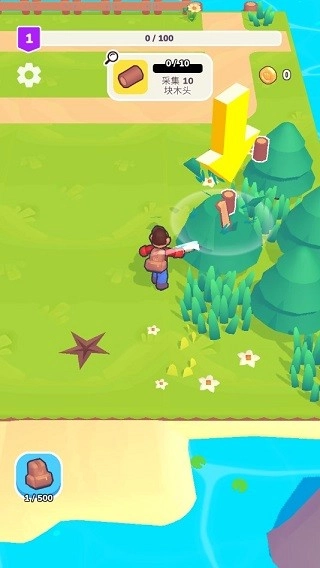 以上是剧情前奏的起始部分,紧接着玩家就漂流到了一座荒岛上。在这座荒岛之上,玩家仅依靠一把斧头,逐步将小岛发展成一座城市。当收集到对应的材料后,就能前往指定地点着手建造。
