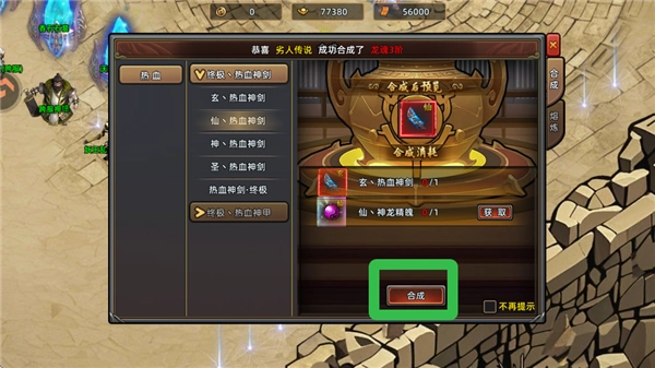 在合成系统中,能够提升热血神剑与神甲的品阶;当成长至终极武器阶段后,便可激活时装幻化功能,且所有属性都将永久保留。