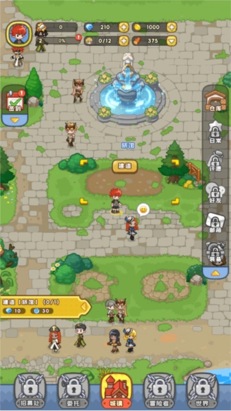 建造与升级各类建筑,像武器店、魔法学院、旅店之类,以此来满足居民和冒险者的需求。