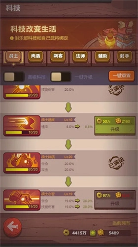 点科技的时候要留意自己主将的职业类型,要是主将是吕布,那就选择战士科技;要是主将是司马懿,那就选择法师科技。