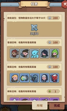 在《快来当领主》游戏的作战过程中,除了召唤领主这一方式外,召唤英雄的途径还分为银币召唤和幸运币祈愿两种。