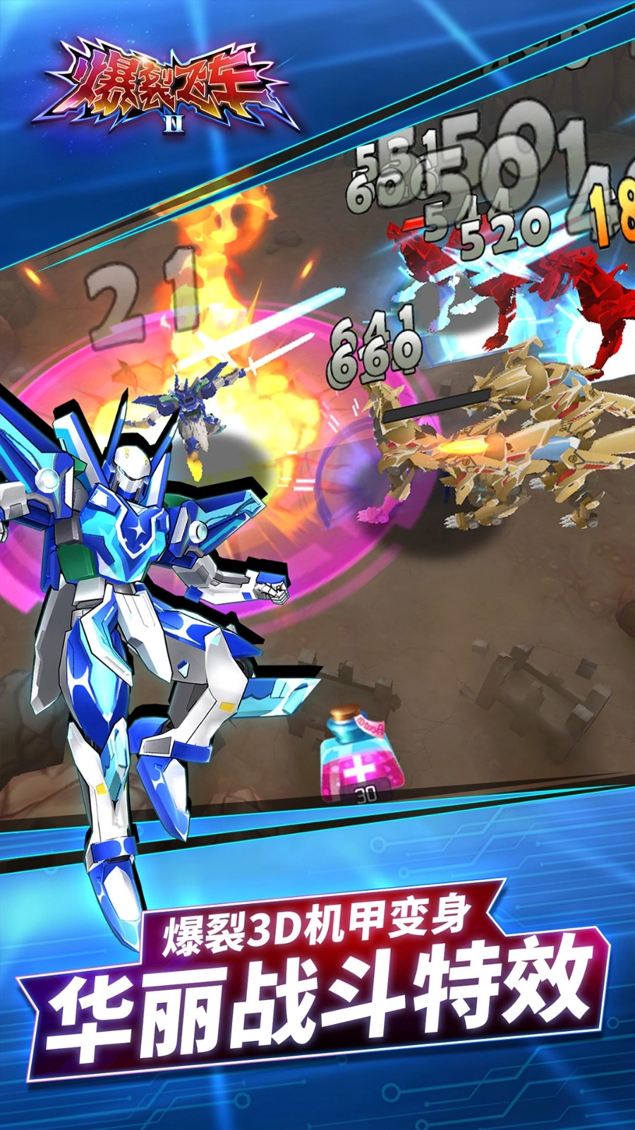 爆裂飞车3D机甲变形,酷炫战斗特效,助你在关卡里畅快挑战,尽享打击快感。