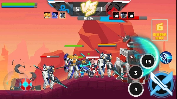 玩家挑选对应的驾驶员和机甲投身战斗,借由击败敌方来带动游戏进程,摧毁敌方水晶赢得最终胜利,每个机甲都具备专属技能,依靠技能组合能更高效地击败敌人以获取胜利;每次挑战都会遭遇不同的对手,各异的敌人带来不一样的游戏趣味,成为王者机甲持续挑战敌人。