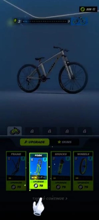 4、用获取到的金币对引擎、轮胎、悬挂这类部件进行升级,以此增强摩托的整体性能。