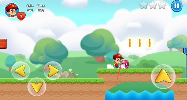1. 您需要通过虚拟按键控制麦克斯跑跳攀爬,在精巧设计的平台间穿梭并躲避各种陷阱。